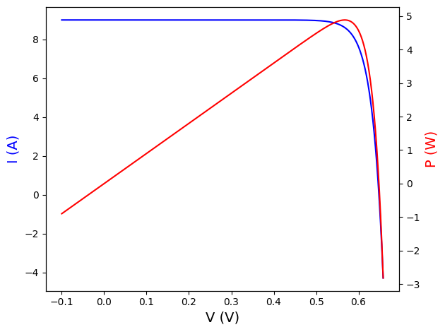# First, we calculate the I-V curve voltage range: from -0.1 V to Voc + 0.01 V